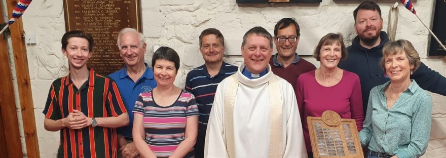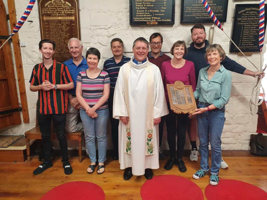 Lunch was enjoyed in several places around the city, before we all headed to Probus, St. Stephen in Brannel and finally St. Columb Major for three excellent eight-bell towers where we were able to practise a special touch of Grandsire Triples for the forthcoming Guild Striking Competition as well as exploring a variety of other methods – including a successful attempt at a ‘scat’ raise. The evening was rounded off with a lovely relaxed supper at The Ring O’ Bells and a presentation to Harry as thanks for organising a wonderfully efficient, enjoyable and successful outing.
